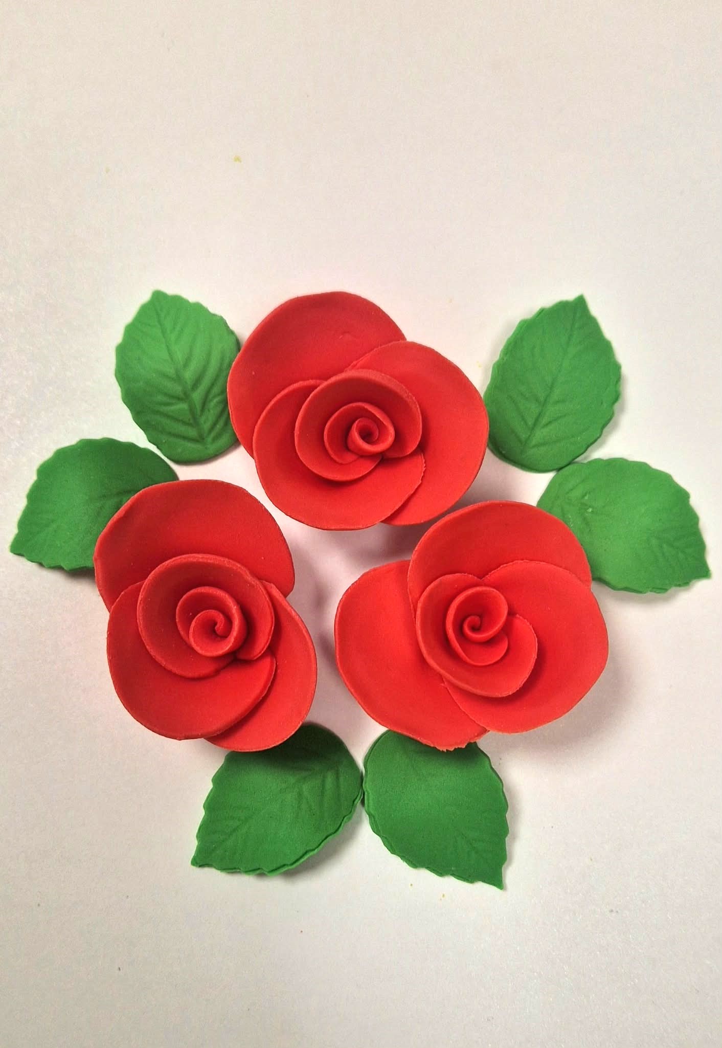 Sada : 3 červené ruže (5 lupeňové) so 6 listami